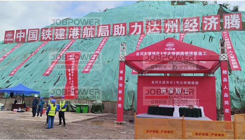 2024年四川达州金河大道顶推项目 中国铁建港航局/左右两副分次顶推,顶推重量1700T,320T顶推设备10套